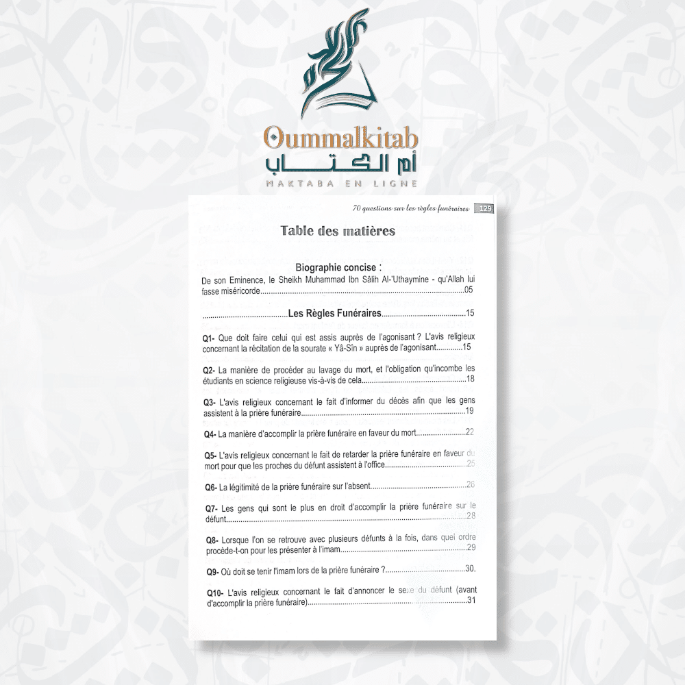 Ce livre répond à ces questions et bien d’autres, offrant aux lecteurs une compréhension approfondie des règles et des rituels funéraires en Islam. Que vous soyez un musulman cherchant à renforcer votre connaissance des enseignements religieux ou que vous soyez confronté à des situations funéraires, ce guide vous offre des réponses précieuses et des informations essentielles pour accomplir ces actes pieux conformément à la tradition islamique.