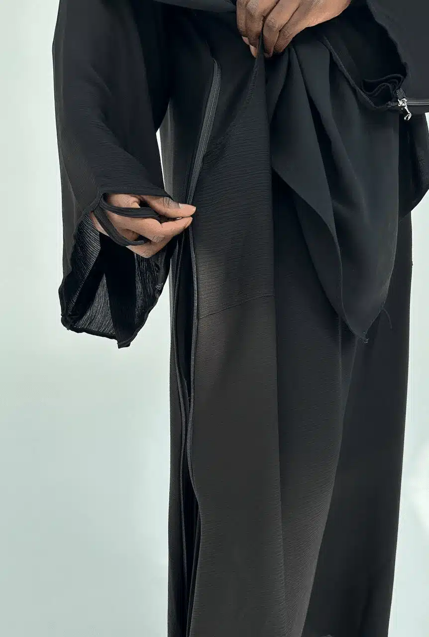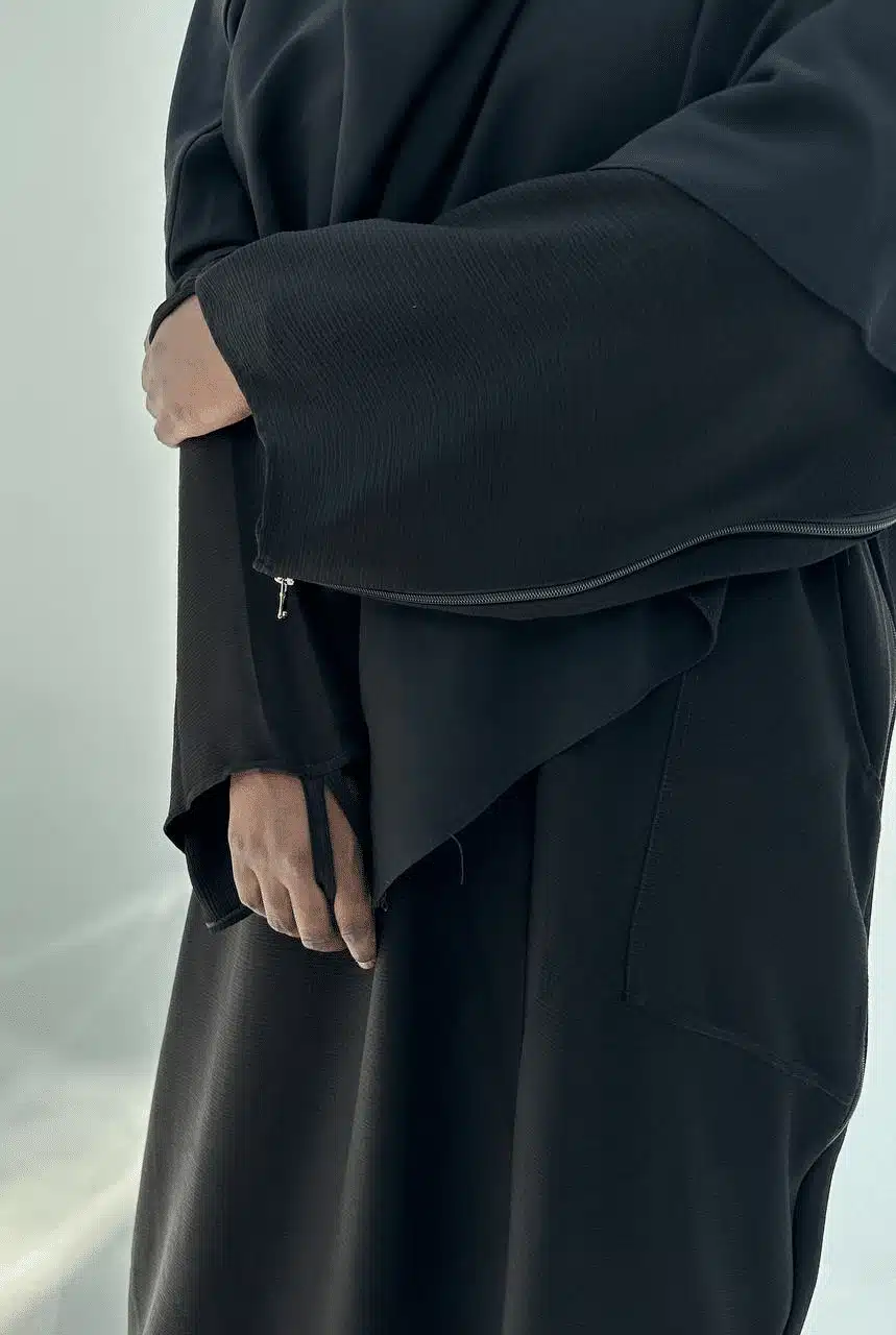 L’innovation majeure de cette abaya réside dans ses zips latéraux uniques. Ces zips vous permettent d’ajuster la coupe selon vos préférences. Offrant ainsi, une silhouette personnalisée et un confort sur mesure. Que vous préfériez une coupe plus ample ou plus ajustée, l’Abaya AJMAAL s’adapte à votre style.