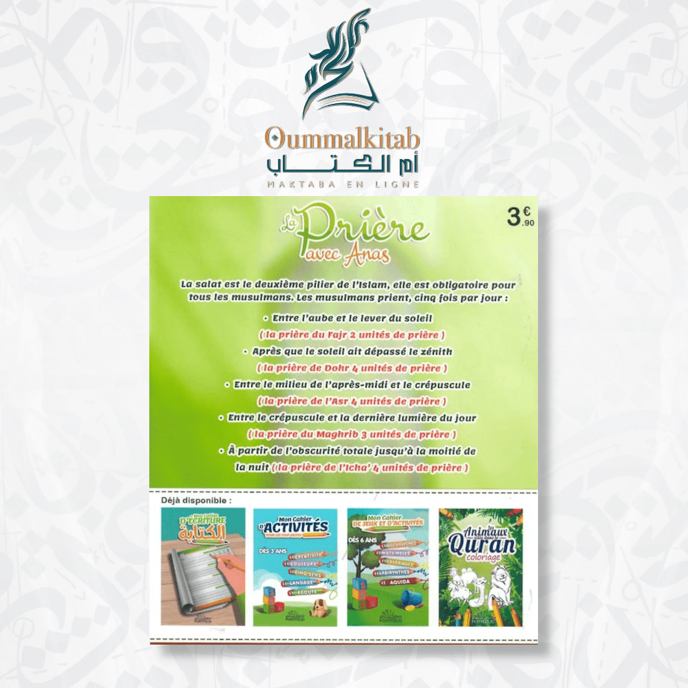 Le livre explique-t-il les différences entre les prières (Fajr, Dohr, etc.) ? Absolument. L’ouvrage détaille le nombre de rak’ats et les spécificités de chaque moment, de la prière de fajr jusqu’à la prière icha, incluant les rappels sur l’importance de la régularité.