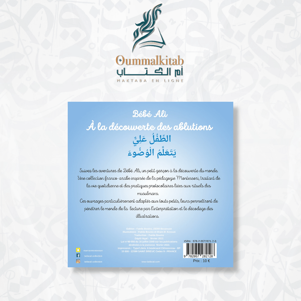 Dans ce premier tome, Bébé Ali découvre les ablutions, l’un des piliers fondamentaux de la vie d’un musulman, à travers les gestes quotidiens de ses parents. Le jeu et la lecture l’accompagnent dans l’apprentissage progressif des différentes étapes des ablutions. Cette méthode d’apprentissage ludique et accessible aux tout-petits est conçue pour les initier en douceur aux pratiques religieuses.