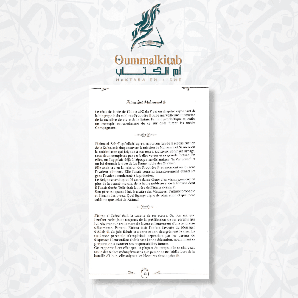 Que vous soyez passionné par les récits épiques ou que vous recherchiez des histoires magnifiques, « La Vie des Sahabiyyates » promet une satisfaction totale. Plongez dans les pages de ce livre et laissez-vous emporter par la grandeur des Sahabiyyates. Une lecture qui transcende le temps, apportant la sagesse et l’inspiration des femmes qui ont marqué l’histoire islamique.