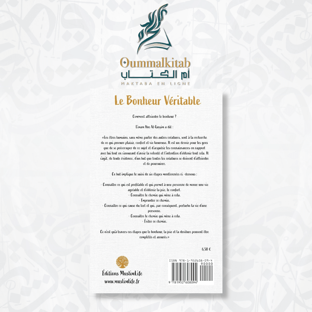 Découvrez « Le bonheur véritable », un guide essentiel qui vous révèle les six étapes clés pour atteindre un bonheur authentique. Inspiré par les enseignements de l’imam Ibn Al-Qayyim, ce livre vous offre les clés pour une vie épanouissante et joyeuse.