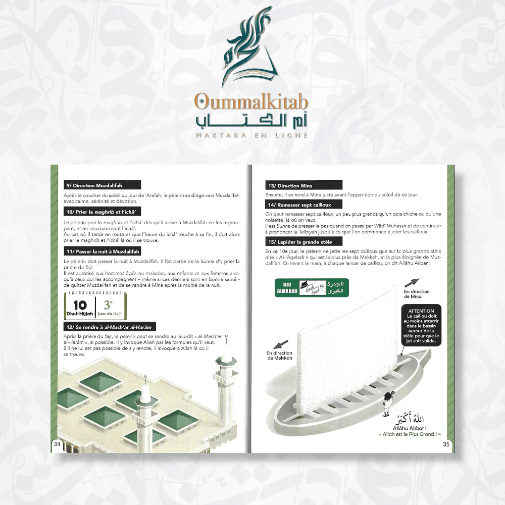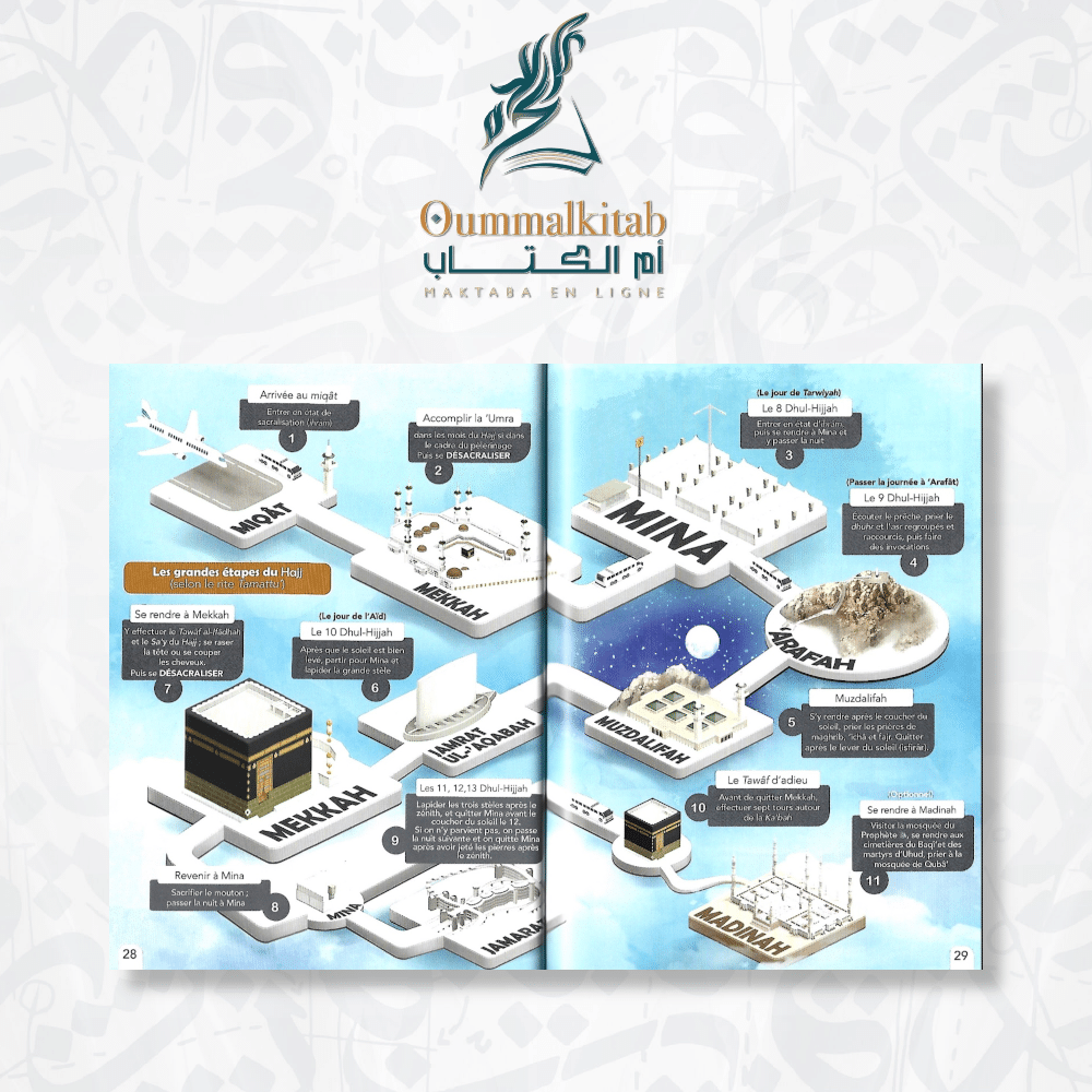 Plongez dans l’expérience du Hajj et de la ‘Umra avec « Le Guide Illustré du Hajj et de la ‘Umra – Bdouin ». Ce petit guide détaillé est votre compagnon de voyage idéal, vous accompagnant à chaque étape de ce voyage sacré. Il combine illustrations colorées, cartes annotées, schémas détaillés et conseils pratiques pour vous aider à préparer et à vivre pleinement votre pèlerinage.