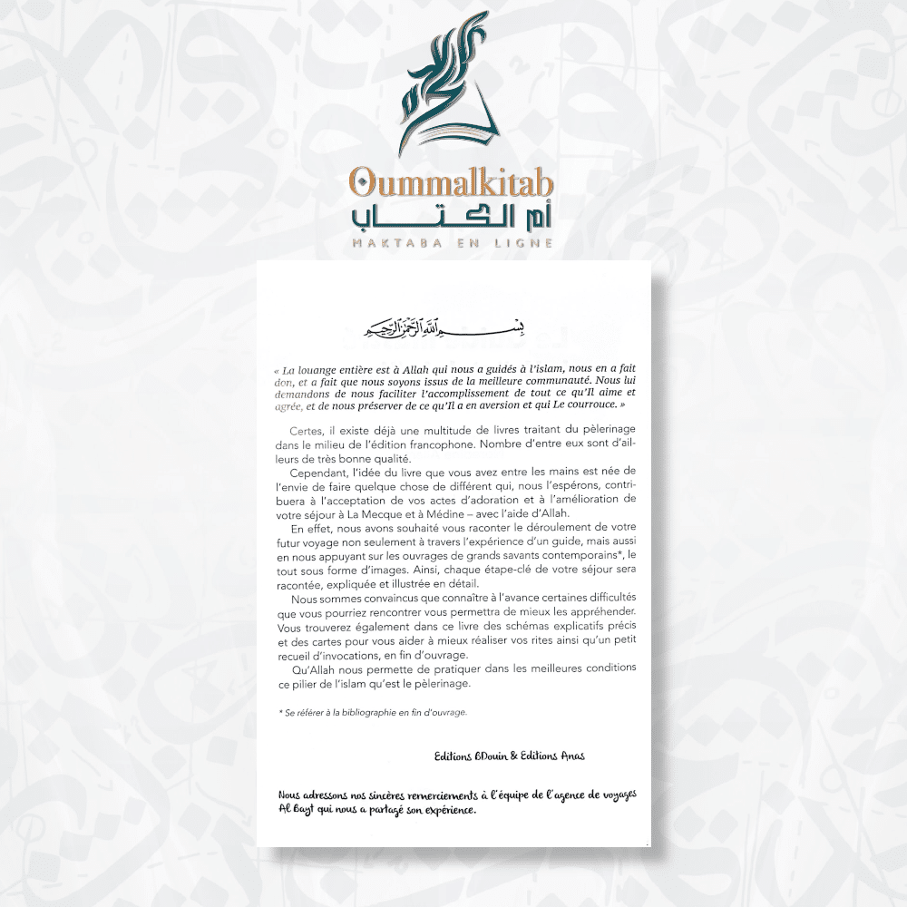 Le pèlerinage est une aventure spirituelle unique, mais sa préparation est essentielle. « Le Guide Illustré du Hajj et de la ‘Umra – Bdouin » vous offre une préparation complète pour chaque étape du voyage, garantissant que vous puissiez accomplir vos rituels avec confiance et dévotion.