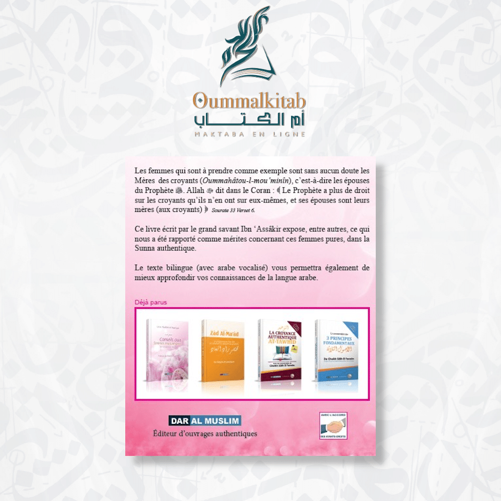 Le livre « Les Épouses du Prophète » est une exploration profonde de l’héritage et de l’importance des Mères des croyants, les épouses du Prophète Muhammad (paix et bénédictions soient sur lui). Ces femmes vertueuses ont joué un rôle crucial dans la diffusion de l’islam et dans l’éducation des croyants. Leur statut élevé est clairement énoncé dans le Coran, Allah dit : « Le Prophète a plus de droit sur les croyants qu’ils n’en ont sur eux-mêmes, et ses épouses sont leurs mères (aux croyants) » (Sourate 33, Verset 6). Cet ouvrage, rédigé par le grand savant Ibn ‘Assakir, explore en détail les mérites de ces femmes pures, basé sur des sources authentiques de la Sunna.