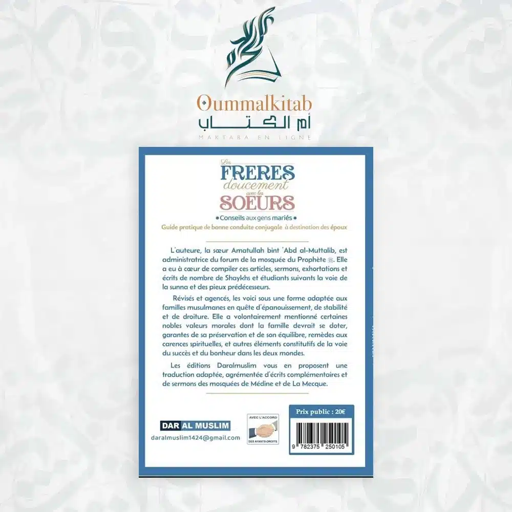 Découvrez un ouvrage essentiel pour toute famille musulmane désireuse d’atteindre l’harmonie, la droiture et l’épanouissement au sein du foyer. À travers ce guide, l’auteure Amatullah bint ‘Abd Al-Muttalib rassemble et organise des conseils précieux tirés d’articles, de sermons et d’exhortations de savants et étudiants de la voie authentique.