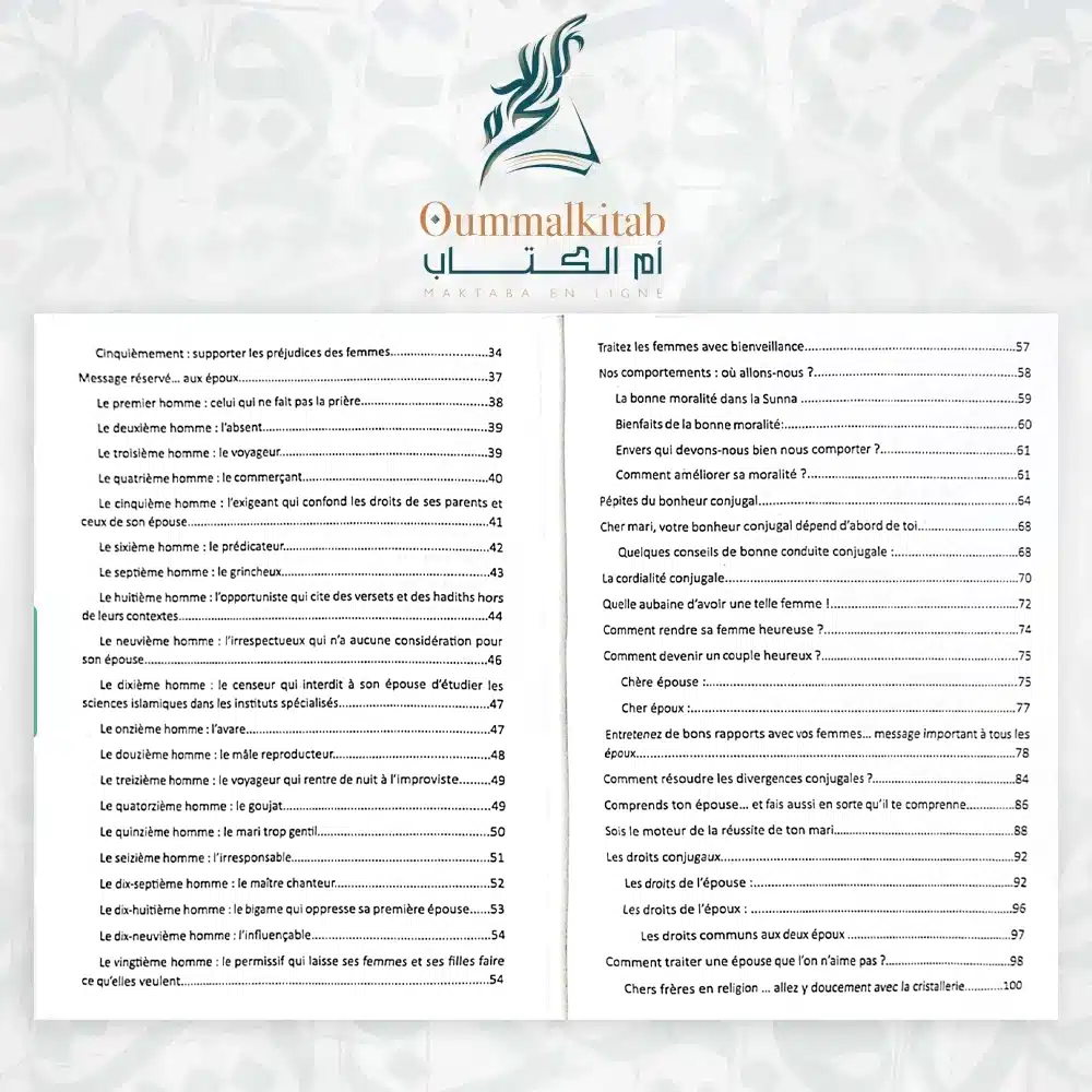 Ces conseils, révisés puis agencés, offrent une vision fidèle et enracinée de la conduite conjugale en islam. Le lecteur découvre des fondements moraux, des comportements nobles, ainsi que des valeurs qui assurent la préservation du foyer et renforcent la relation entre époux.