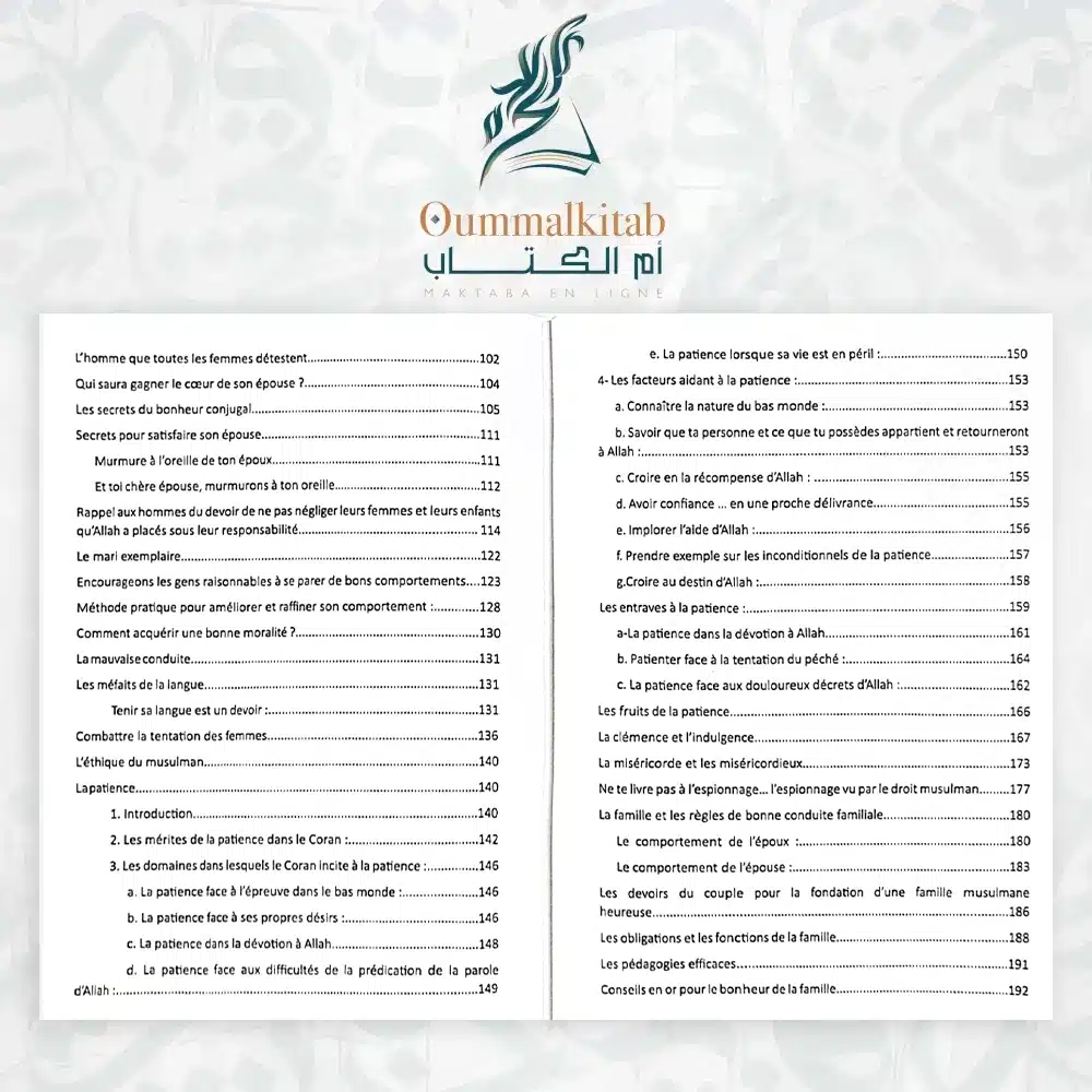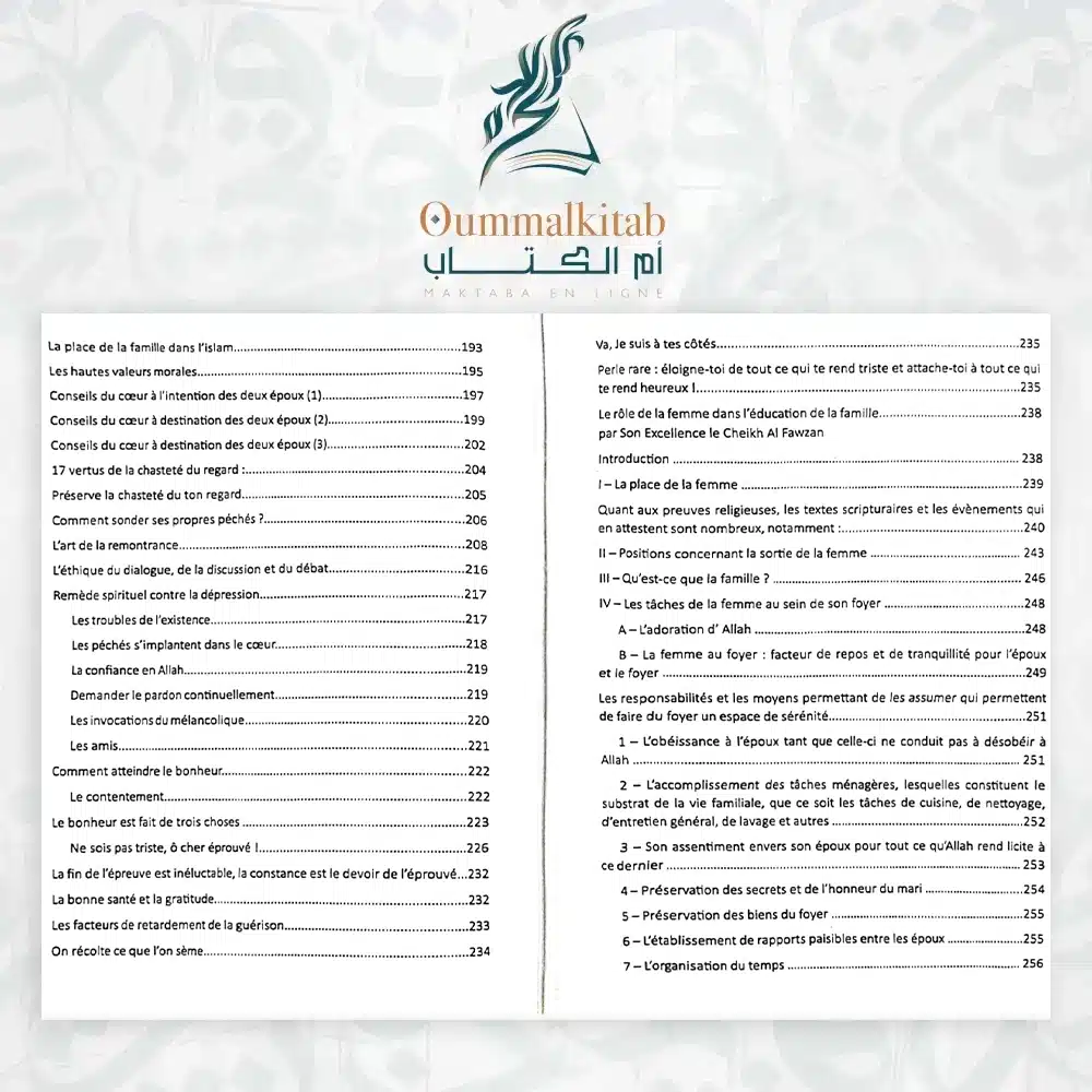 Chez OUMM AL KITAB, nous vous proposons une sélection complète d’ouvrages religieux fiables, enrichissants et conformes à nos valeurs sacrées.
