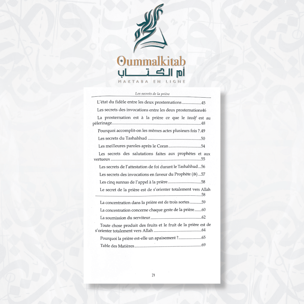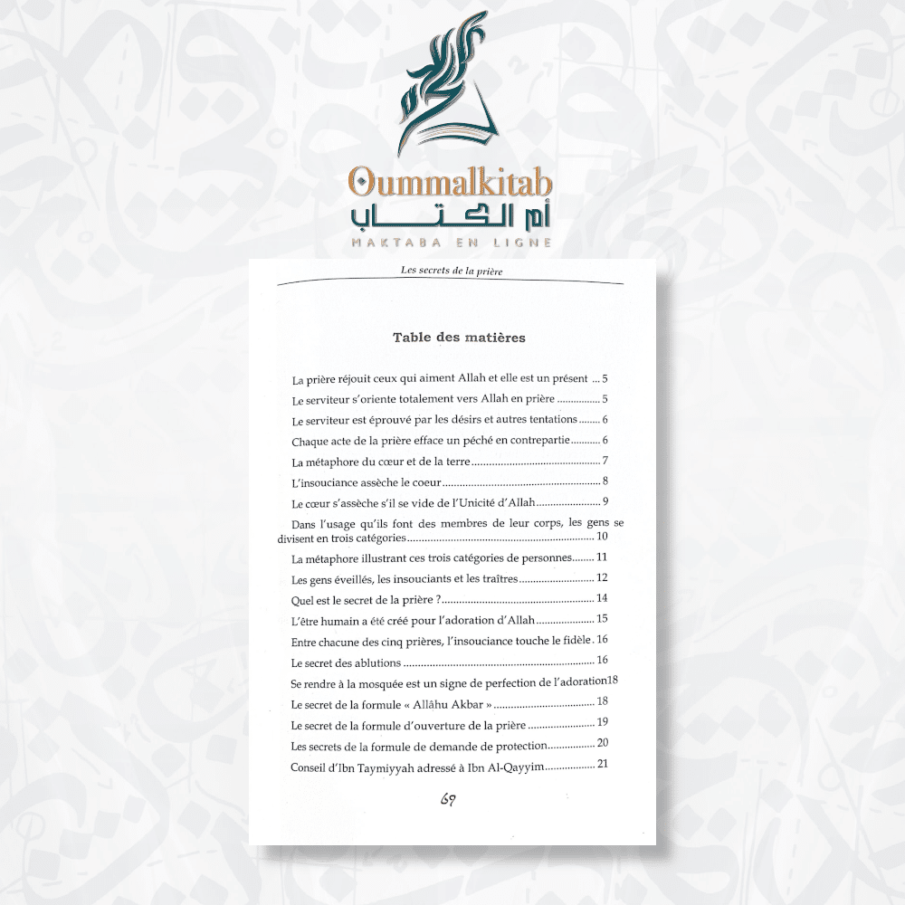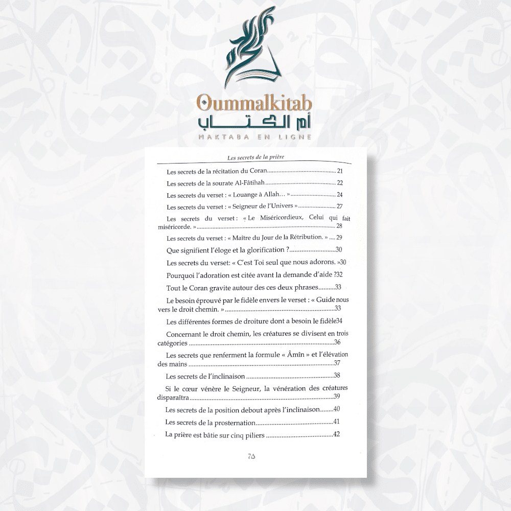 « Les Secrets de la Prière » est un ouvrage qui vous aidera à révéler les trésors cachés de la prière et à embrasser chaque moment d’adoration avec gratitude et amour. Plongez dans ce livre pour approfondir votre connexion spirituelle et vivre une expérience de prière inégalée.