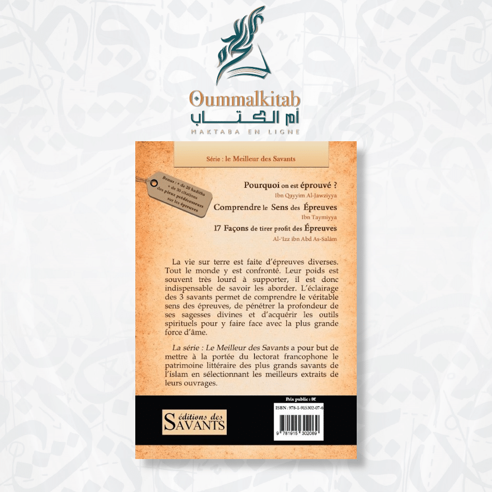 Ce livre compile les enseignements et les conseils de trois éminents érudits : Ibn Qayyim Al-Jawziyya, Ibn Taymiyya et Al ‘Izz Ibn Abd As-Salam. Leurs écrits sont rassemblés dans un seul ouvrage pour éclairer votre compréhension des épreuves de la vie et vous aider à vous rapprocher d’Allah.