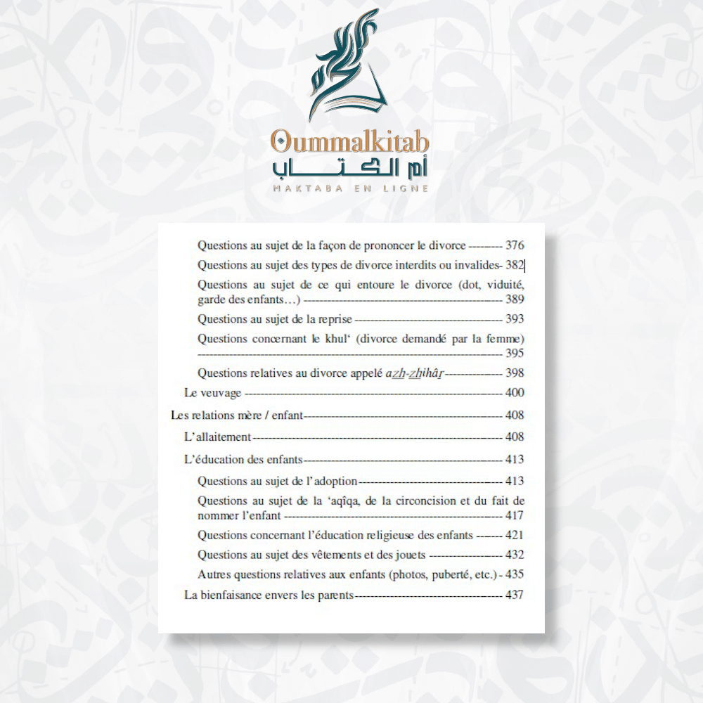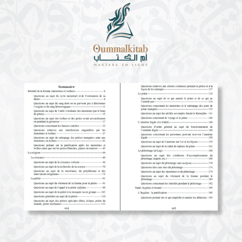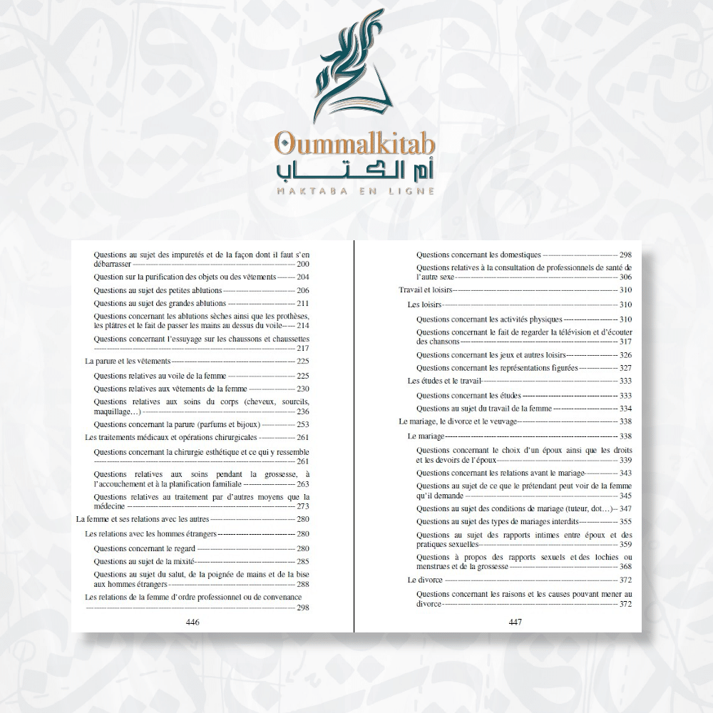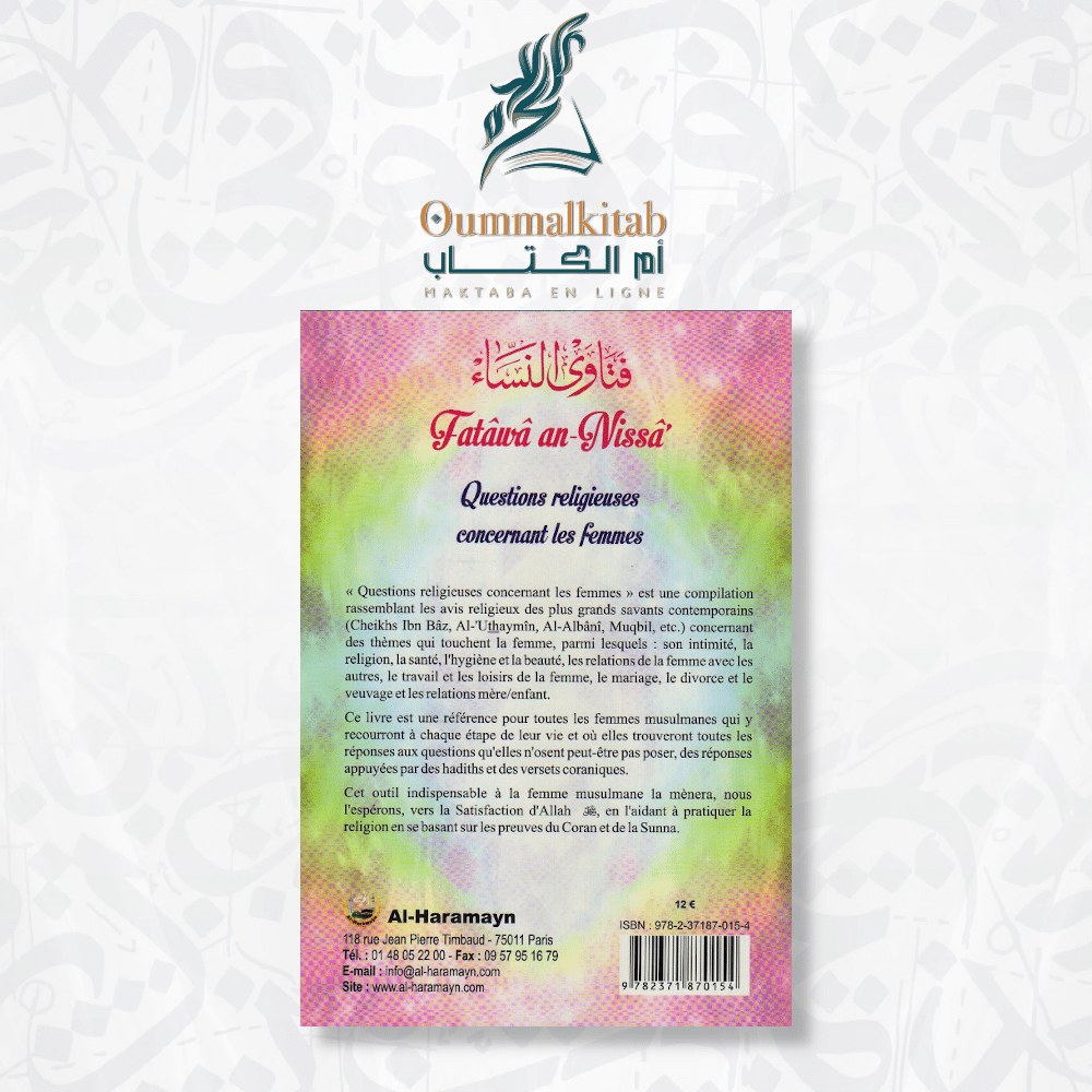 Dans cet ouvrage exceptionnel intitulé « Questions religieuses concernant les femmes ». Vous découvrirez une compilation précieuse de plus de 400 avis religieux émanant des plus éminents savants contemporains de l’Islam. Ces avis ont été soigneusement sélectionnés parmi les enseignements des savants tels que Cheikh Ibn Bâz, Al-‘Uthaymîn, Al-Abani, Muqbil, et d’autres encore. L’objectif est de fournir des réponses détaillées à une multitude de questions et de préoccupations qui touchent la vie des femmes musulmanes.