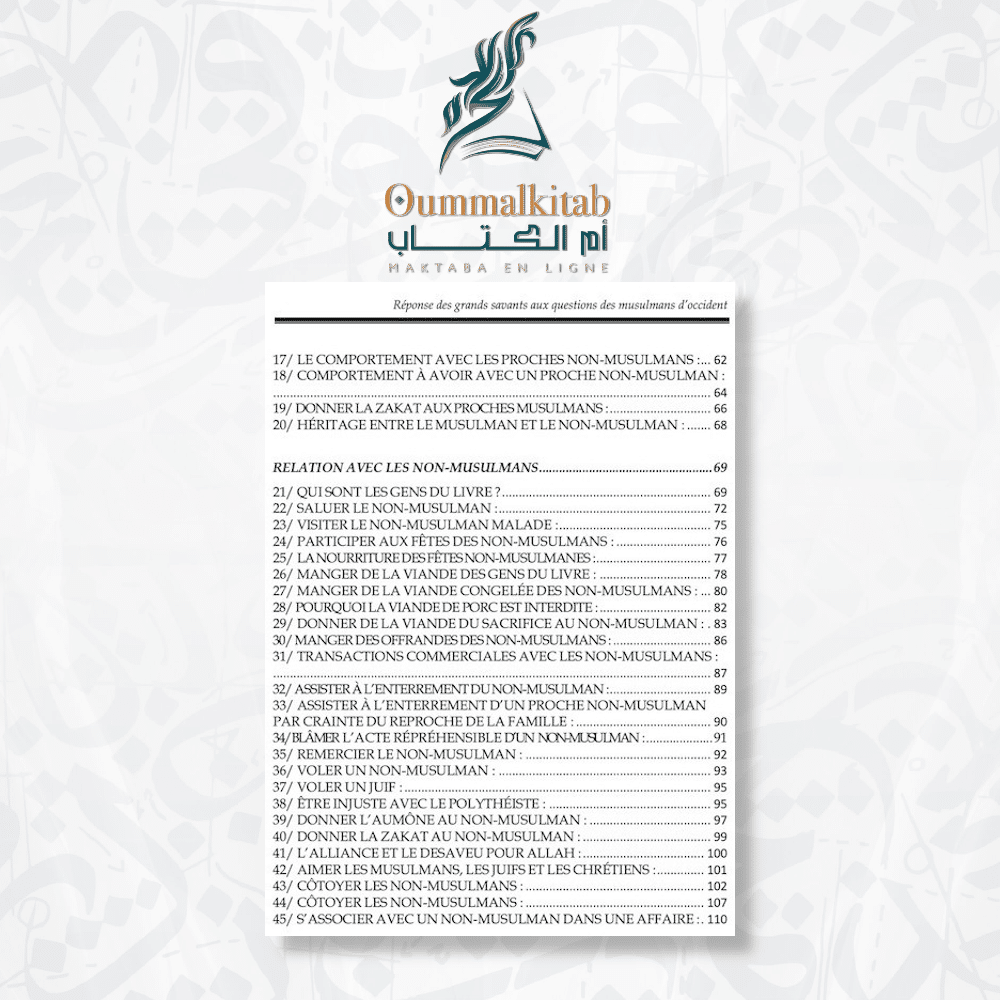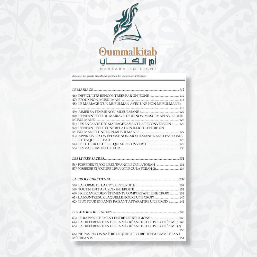 Que vous soyez un musulman vivant en Occident ou que vous cherchiez à comprendre les questions qui se posent aux musulmans de cette région, ce livre est une ressource inestimable. Les réponses données par les grands savants abordent des thèmes essentiels tels que la reconversion et bien d’autres encore. Chaque réponse est basée sur les principes islamiques authentiques. Elles offrent des directives claires pour naviguer dans les défis de la vie moderne. Les musulmans d’Occident trouveront en ce livre un compagnon de confiance pour les aider à concilier leur foi avec les réalités de leur environnement. Les enseignements de ce livre sont une lumière qui éclaire le chemin des croyants vivant en terre étrangère.